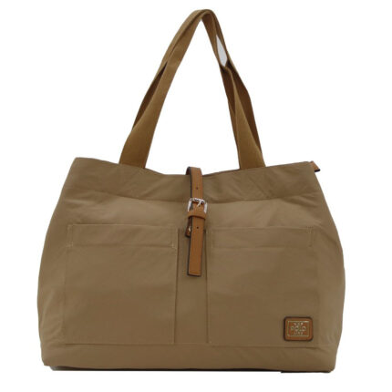 Γυναικεία τσάντα shopper με πορτοφολάκι. Έχει δύο εσωτερικές βοηθητικές θήκες και μία διαχωριστική βοηθητική θήκη με φερμουάρ. Ο κύριος χώρος της τσάντας κλείνει με φερμουάρ. Είναι από οικολογικό συνθετικό δέρμα με χρύσες λεπτομέρειες και ανάγλυφο λογότυπο “19V69 ITALIA”.