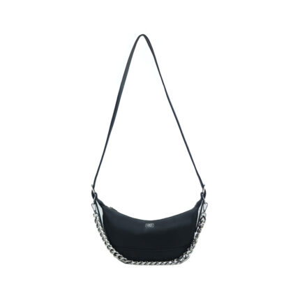 Γυναικεία crossbody τσάντα με ρυθμιζόμενο και αποσπώμενο υφασμάτινο ιμάντα. Διαθέτει μια εξωτερική θήκη στο πίσω μέρος της τσάντας. Ο κύριος χώρος της τσάντας διαθέτει δύο εσωτερικές βοηθητικές θήκες και κλείνει με φερμουάρ και καπάκι το οποίο έχει μεταλλικό κούμπωμα. Είναι από αδιάβροχο ύφασμα με χρυσές λεπτομέρειες.